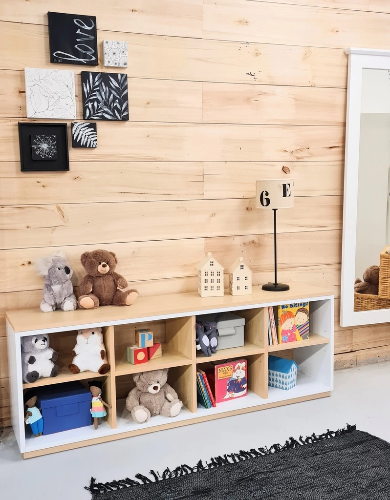 Nuestra biblioteca montessori tiene un estilo de lineas rectas, altura baja y 4 estantes regulables ! Esta pensado para que los más chiquitos puedan guardar y acceder a sus libros y juguetes libremente .