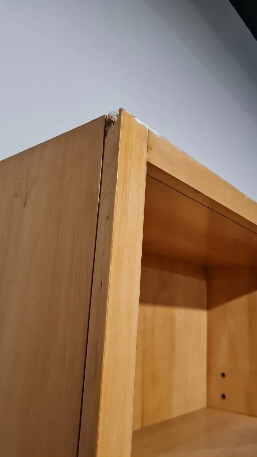 Versátil y funcional biblioteca, realizada en guatambu enchapado. Posee estantes regulables a la vista, en la parte superiror y 2 puertas con un estante regulable interior en la parte inferior.
