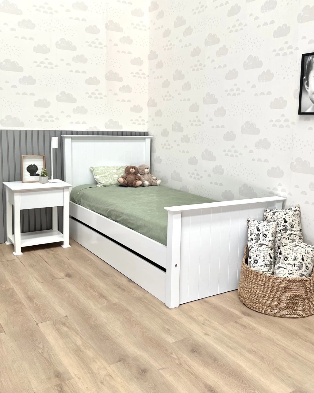 La linea BELEN se caracteriza por ser la LINEA PREMIUM del CORRAL por tener las patas mas robustas del mercado, con un espesor de 6x6 cm. Su respaldar y piecera están compuestos por un panel ranurado vertical y molduras en sus terminaciones. Se les puede agregar una cama carro o un modulo bajo cajones abajo cama y baranda de protección !