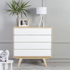 Cómoda con la altura ideal para cambiar a tu bebe ✓. Cuenta con 4 cajones muy amplios con guias telescopicas ( que permiten la apertura total del cajón ) y sistema de apertura con Uñero. El acabado exterior esta procesado en una máquina electrónica que imprime una veta clara y pareja sobre las placas y la hace más resistente a las rayaduras.